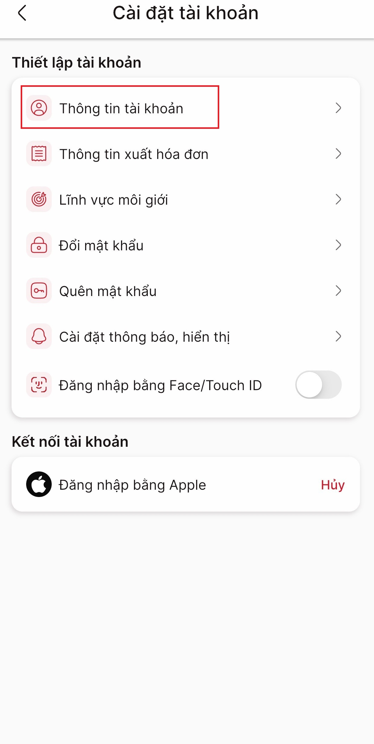 Bước 3: Tại màn hình Cài đặt tài khoản, bạn chọn Thông tin tài khoản.