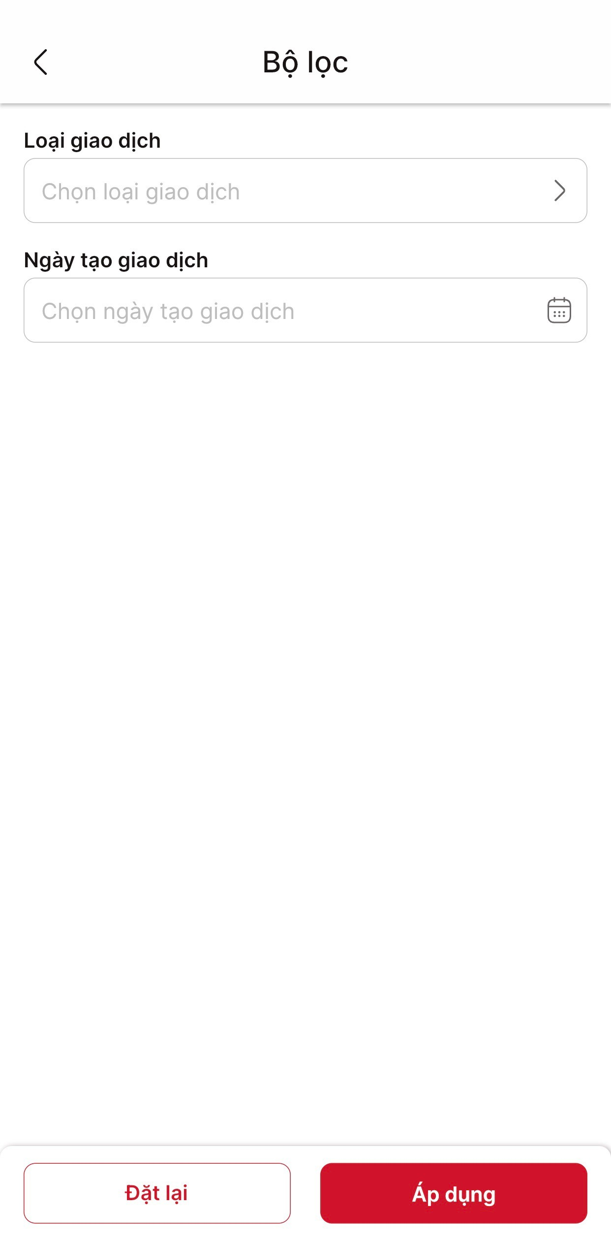 Bước 4: Để tìm kiếm một giao dịch cụ thể, bạn chọn chức năng Lọc và tìm kiếm theo Loại giao dịch, Thời gian giao dịch sau đó nhấn chọn Áp dụng.