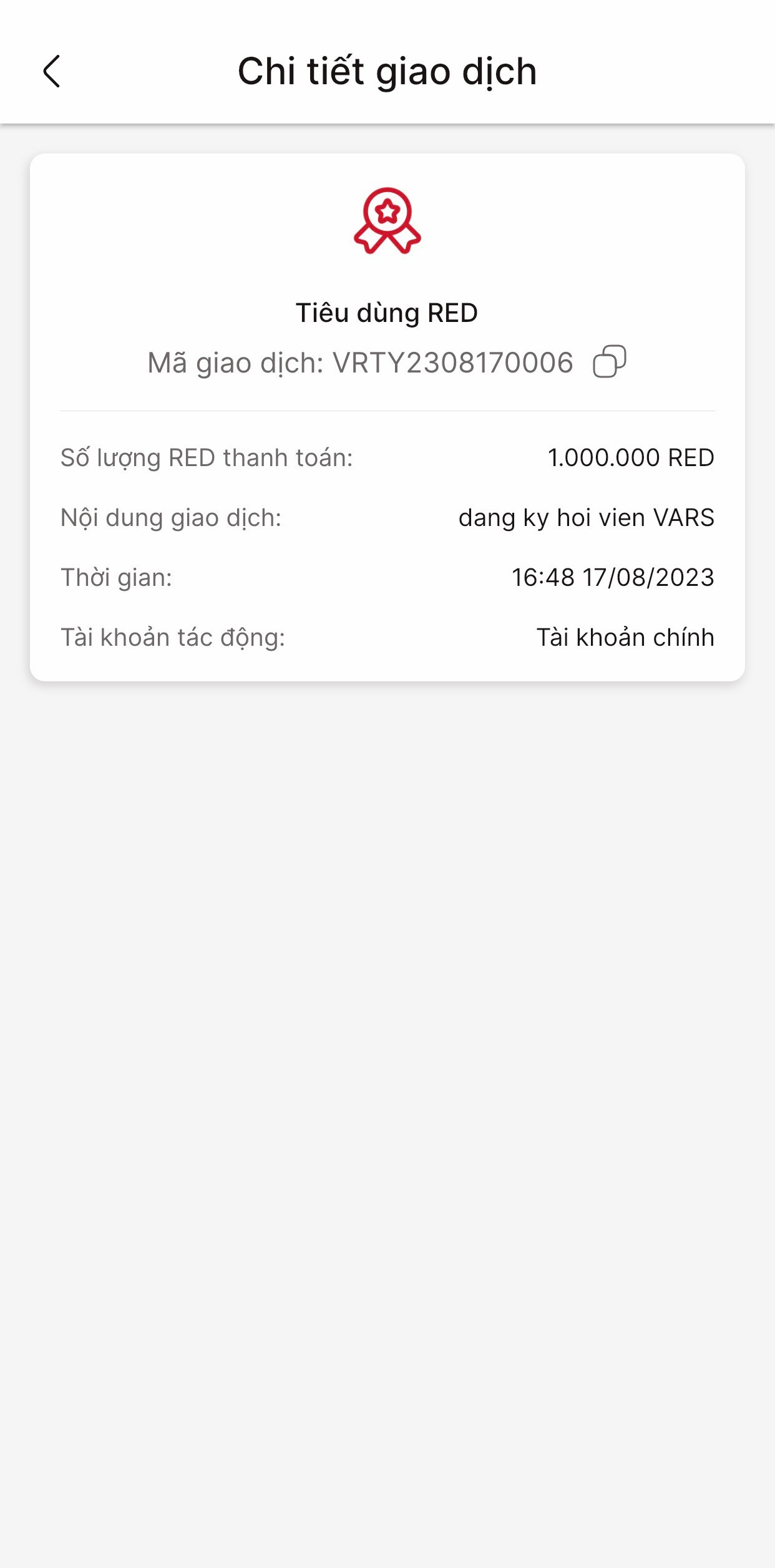 Bạn muốn xem lịch sử giao dịch, tiêu dùng từ tài khoản chính của bạn như: Nạp RED, Tiêu dùng RED, Thanh toán dịch vụ… bạn có thể sử dụng chức năng Lịch sử giao dịch để tra cứu/ xem lại chi tiết các giao dịch. Bạn thực hiện theo các hướng dẫn sau: