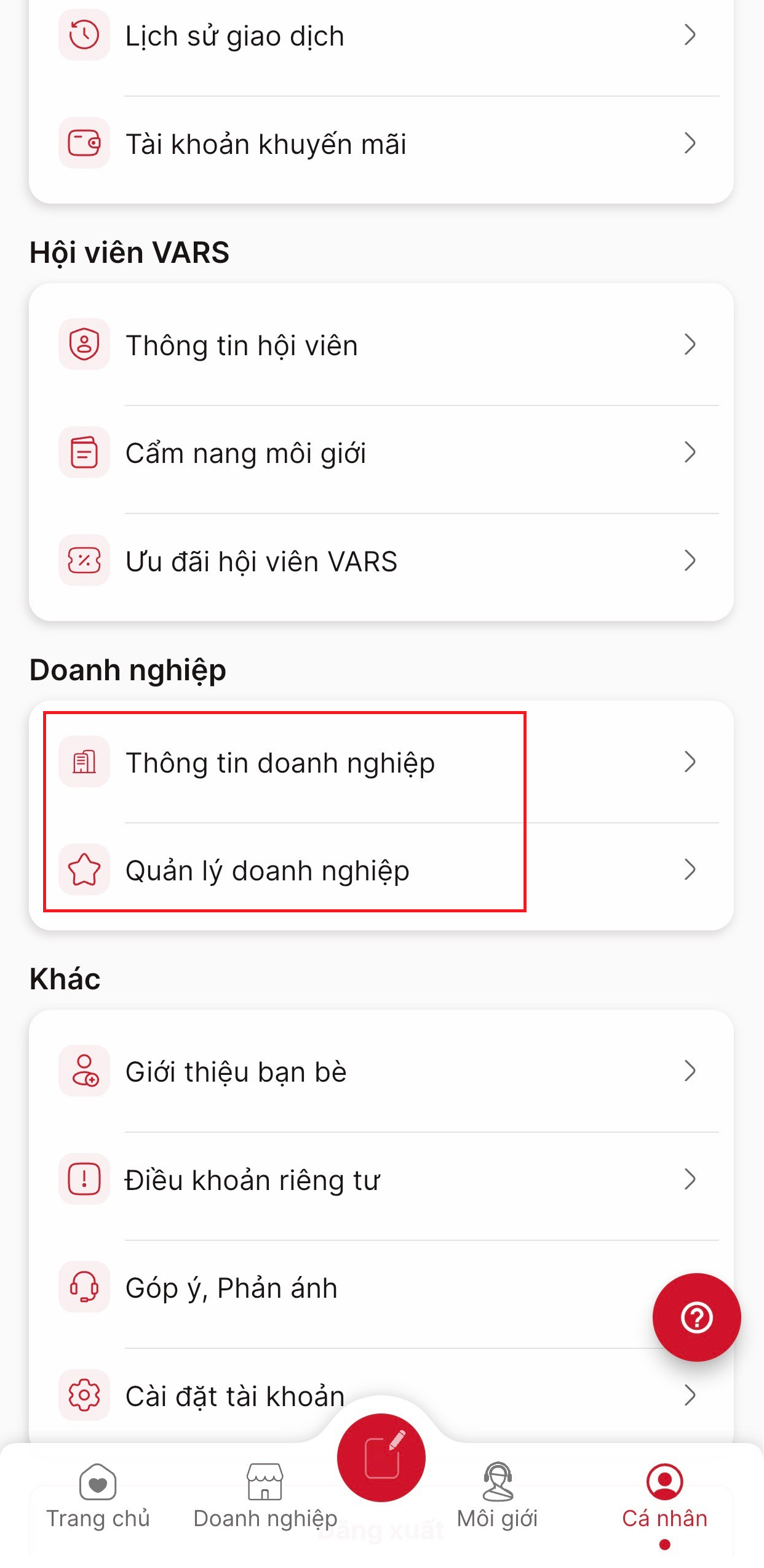 2. Sử dụng tài khoản Doanh nghiệp trên ứng dụng VARs Connect