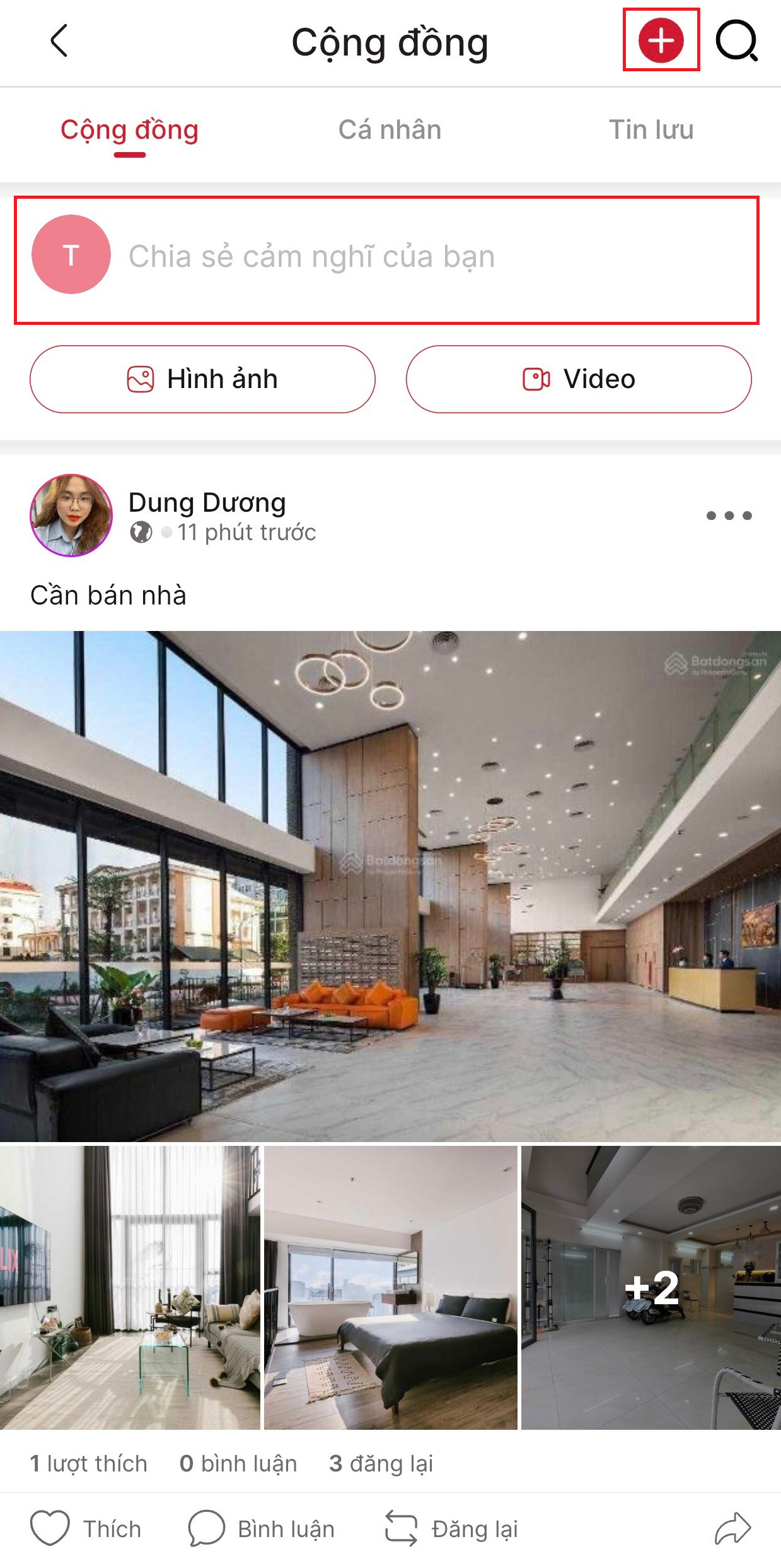 * **Tab Cộng đồng**: Để xem tin cộng đồng môi giới đã chia sẻ.