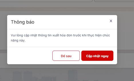 Bước 4: Trường hợp muốn xuất hóa đơn, sau khi tích chọn Xuất hóa đơn GTGT. Hệ thống xuất hiện màn hình Thông báo, bạn chọn Cập nhật ngay.