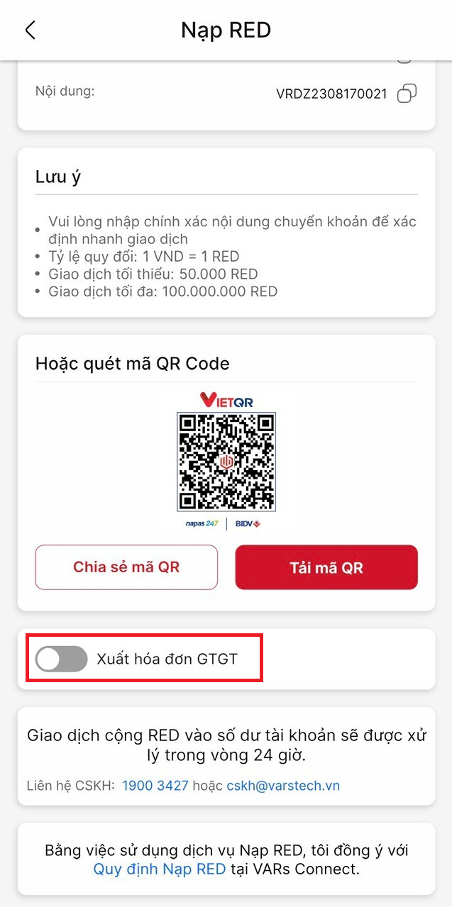 💡Nạp RED trên VARs Connect (hệ điều hành Android)
