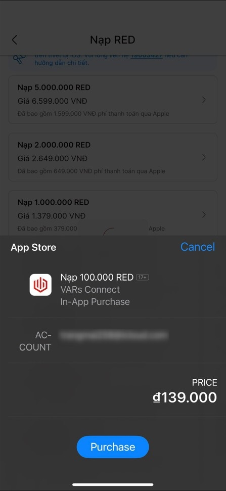 💡Nạp RED trên VARs Connect (hệ điều hành iOS)